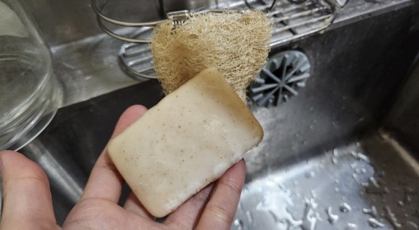 제로웨이스트샵에서 고체주방비누를 구입해 설거지 할 때 사용하고 있어요! 캠프 사전미션 때 받은 식물 수세미와 사용하니 거품도 잘 나오고 좋아요~~